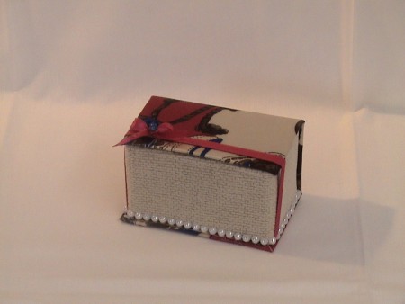 Caixa livro forrada a tecido - beje e rosa com fecho de elástico.JPG