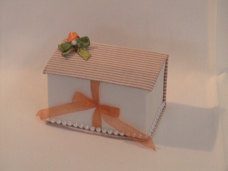 Caixa livro forrada a tecido salmão e branca com fita.JPG